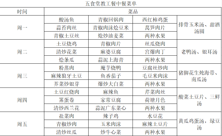 二、五食堂教工餐厅全体员工衷心祝愿您:用餐愉快,元气满满,工作顺利!