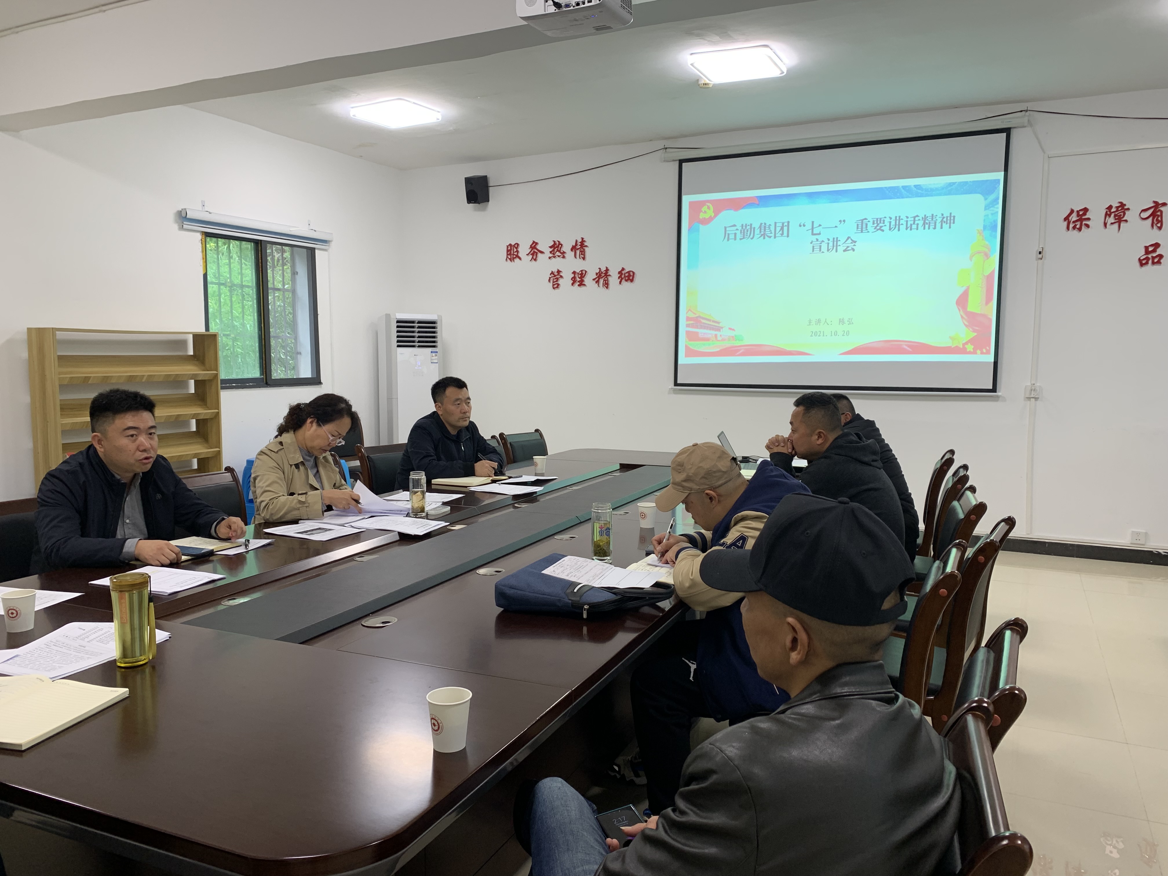 10月20日下午,后勤集团直属党支部副书记陈弘以“心怀‘国之大者’坚持铸魂育人”为主题给后勤集团全体教职工做“‘七一’重要精神”宣讲。
