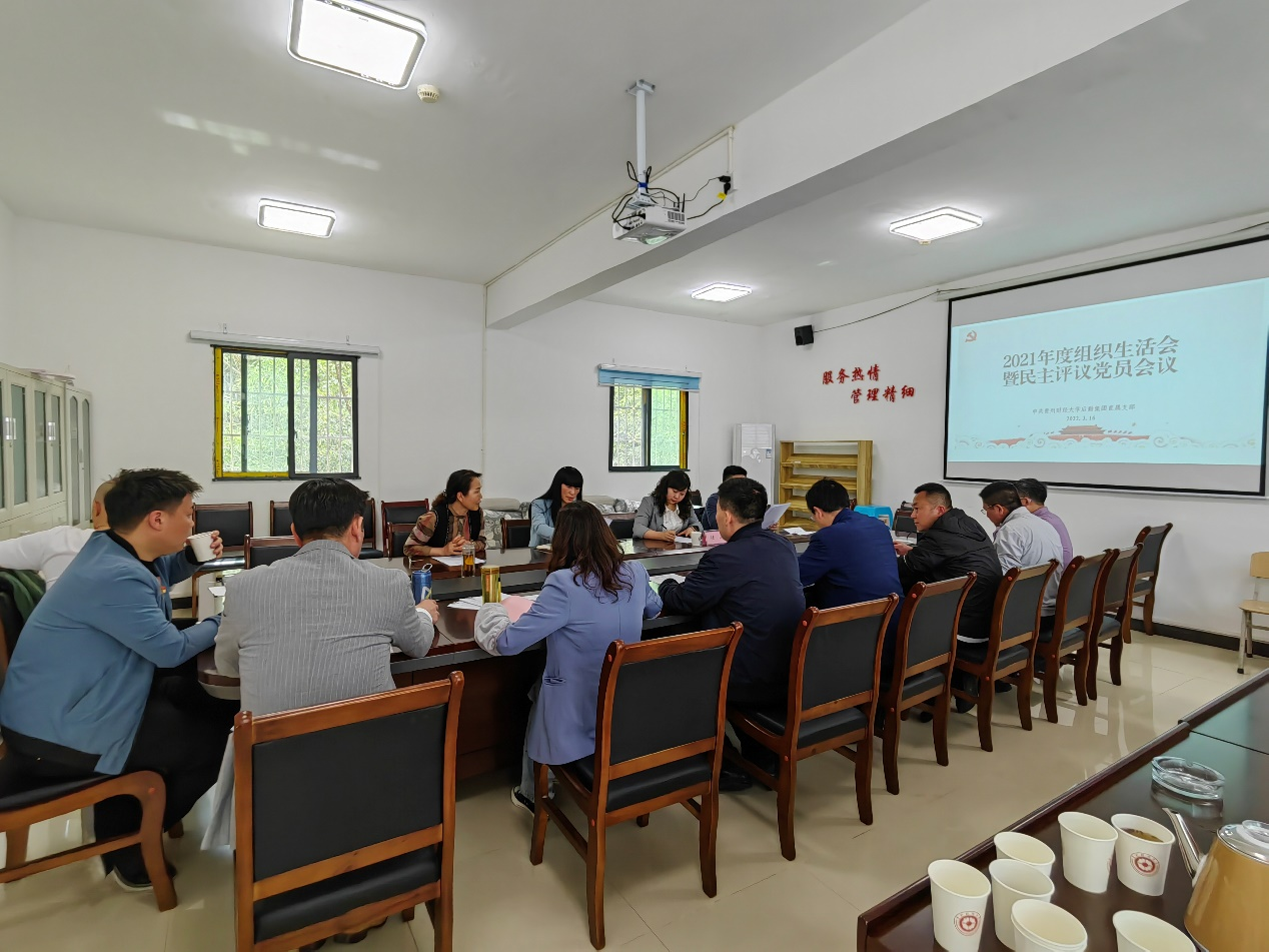 3月16日下午,后勤集团直属党支部在敦行楼二楼会议室召开2021年度组织生活会暨民主评议党员大会。校党委委员、副校长彭洁,学校督导组成员桂澜列席指导,会议由后勤集团直属党支部书记刘翠微主持,全体党员参加。