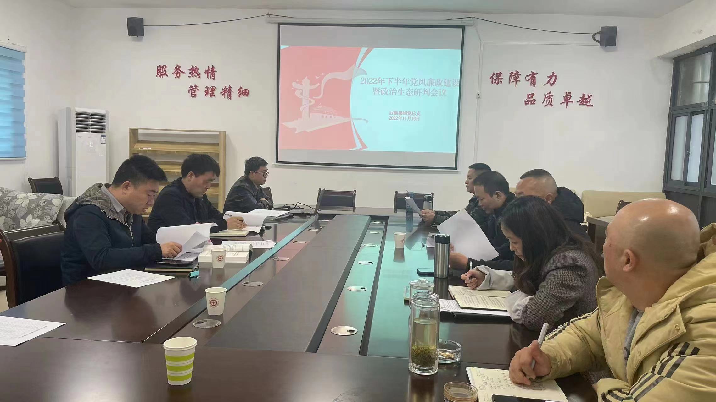 2022年11月16日,后勤集团党总支召开2022年下半年党风廉政建设暨政治生态研判会,会议由后勤集团党总支副书记、总经理陈弘主持,全体党员参加。