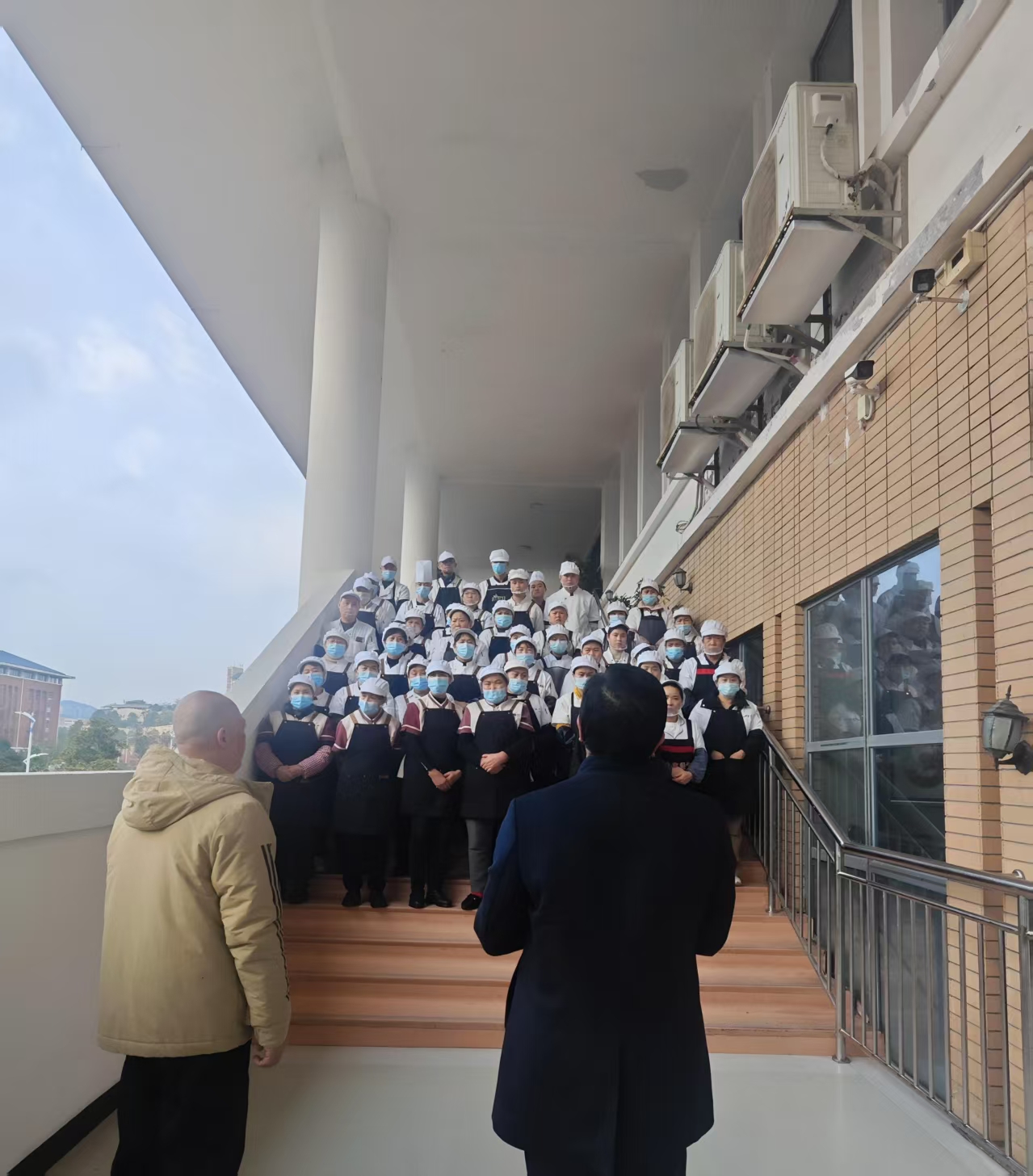 12月31日,元旦佳节来临前夕,贵州财大资产经营管理有限公司副总经理程松涛带领食品安全总监等相关人员对各食堂食品安全和生产安全培训。食堂员工全员参训,以学促干筑牢校园安全饮食防线。