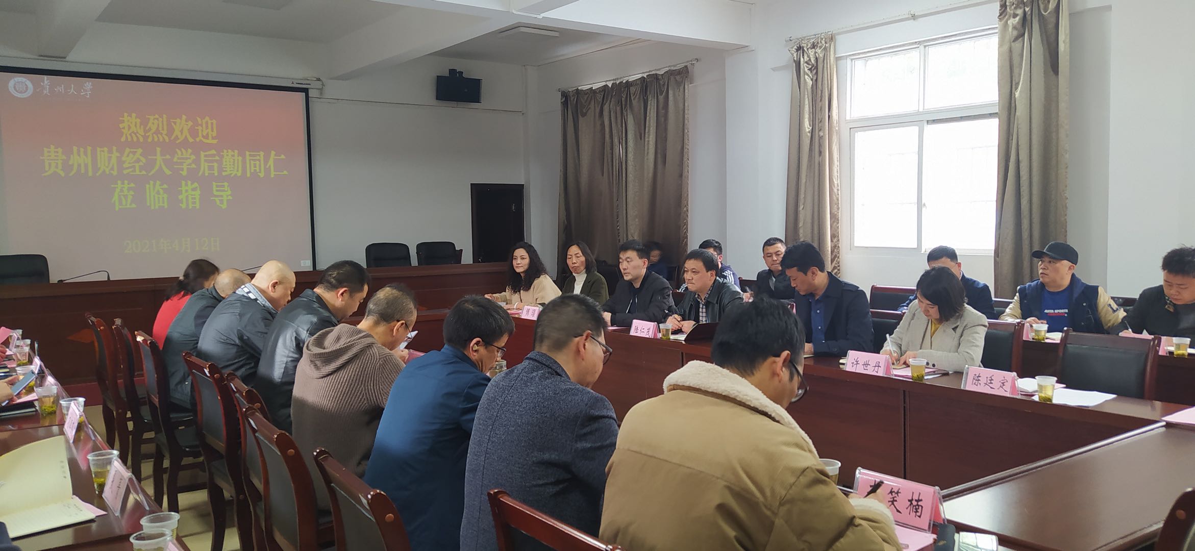 4月12日下午,贵州财大资产经营管理有限公司与学校后勤处组成联合调研团一行到贵州大学后勤管理处进行后勤工作交流学习。资产公司副总经理吴健率公司综合办公室、市场发展部、餐饮中心、交通中心等相关职能部门工作人员前往。贵州大学后勤管理处处长张华、副处长吴文初、张卫兵及相关部门负责人参与此次交流座谈。