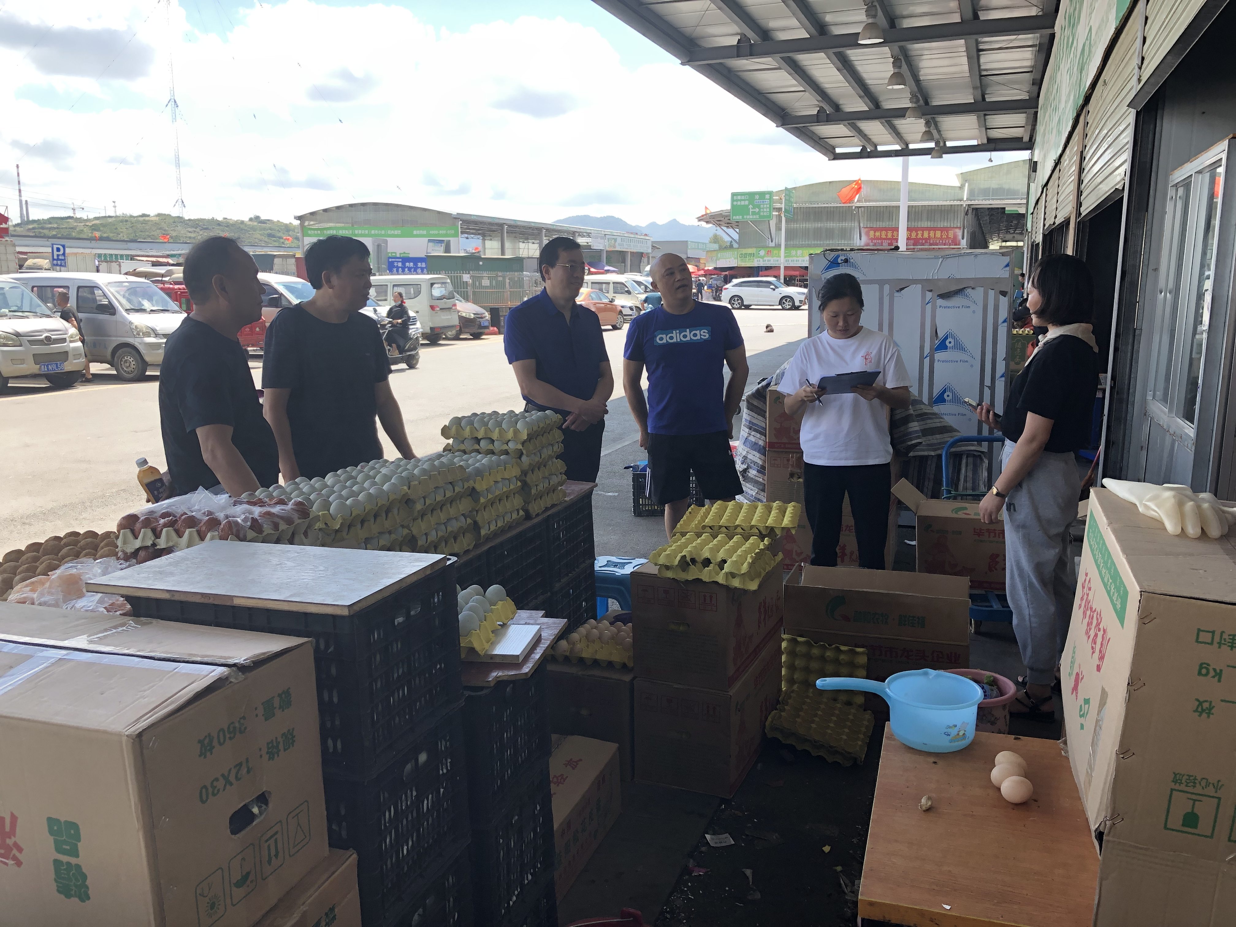 后勤集团为做好食堂食品安全工作,为广大师生筑牢食品安全防线。9月26日上午,后勤集团副总经理程松涛带队,财务投资部经理张远强、餐饮项目部经理宋佳、蒲荣贵及相关工作人员到扎佐贵阳农产品物流园进行原材料采购调研。