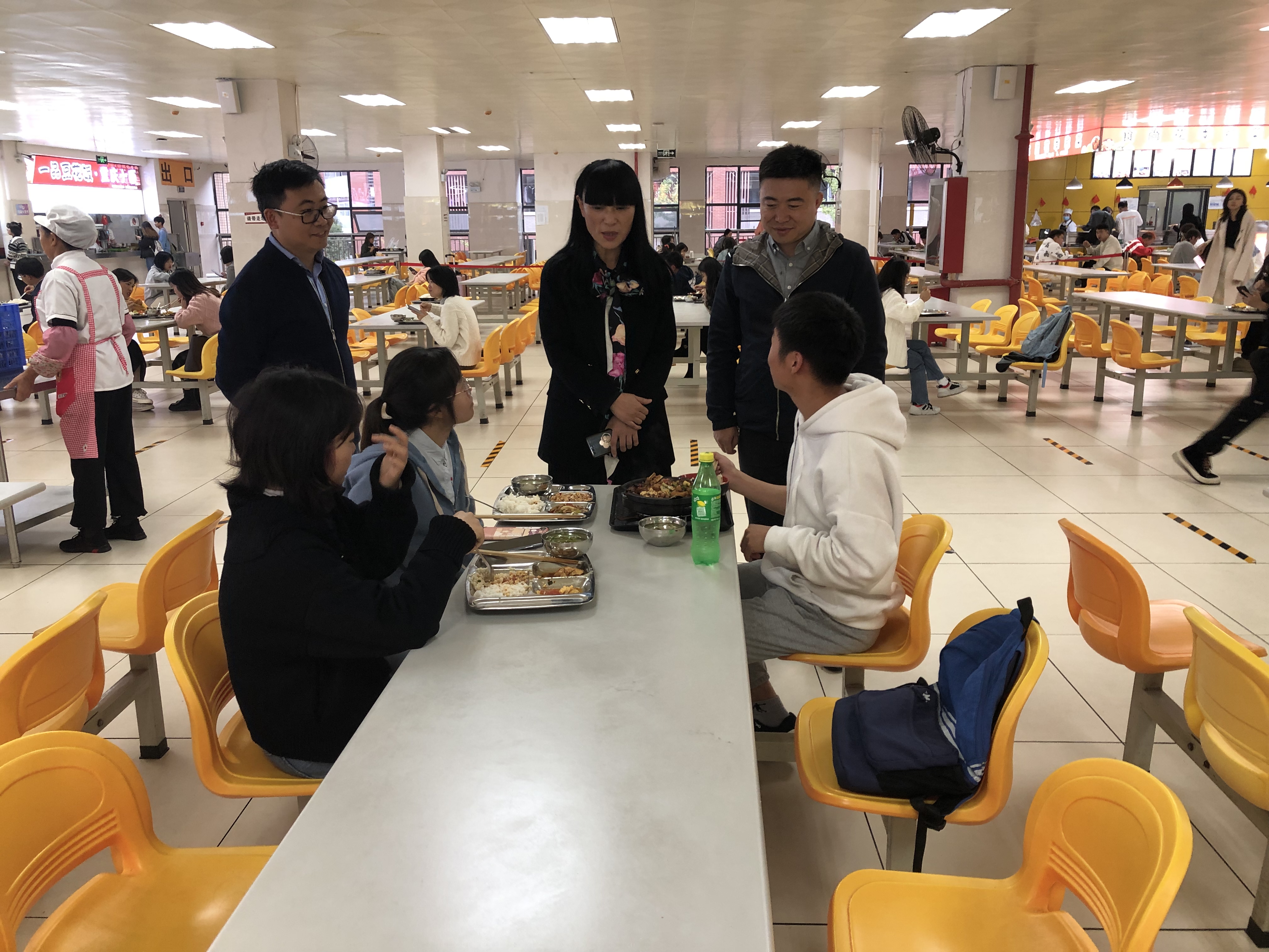 彭洁先后走进花溪校区第二、第三食堂,同在餐厅就餐的同学进行亲切交流,仔细询问他们对食堂饭菜质量、价格及食堂工作人员服务态度等方面的感受,听取同学们对食堂服务的意见和建议。