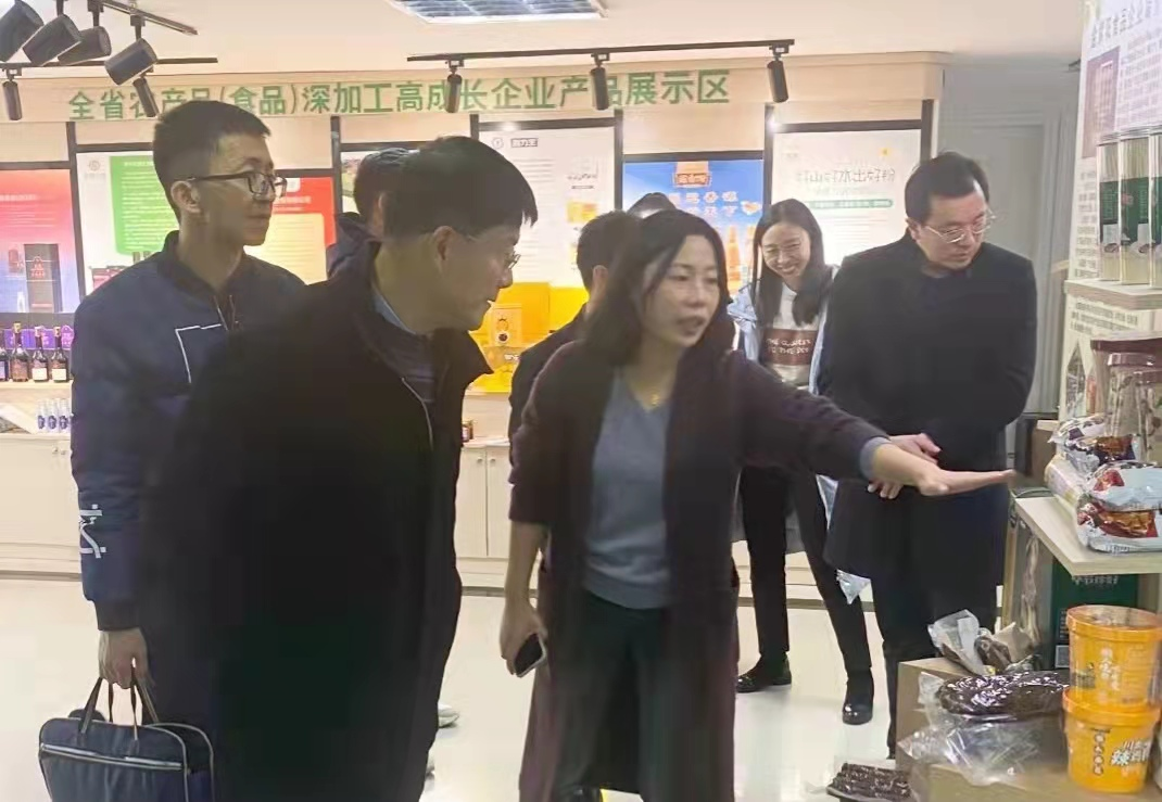 在何秀黔副厅长的带领下,与会人员参观了省内16家农产品(食品)深加工高成长企业的特色食品展区,详细了解产品的生产工艺、产品品质、价格等信息。