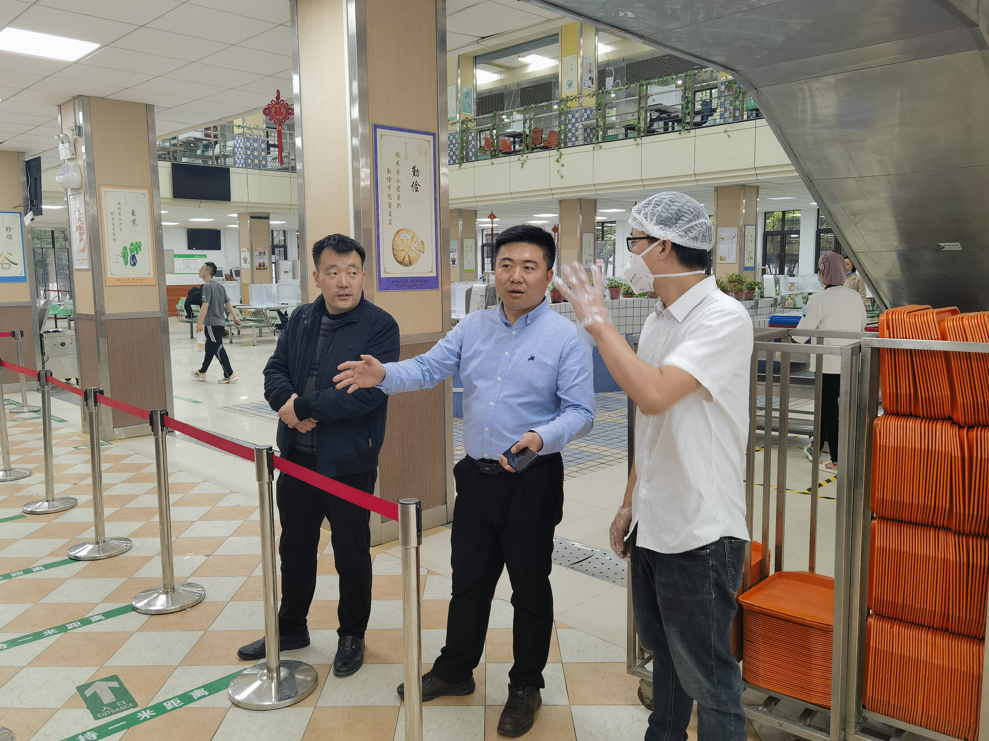 13日,陈弘带队到部分在宁高校食堂和学生公寓进行参观调研。