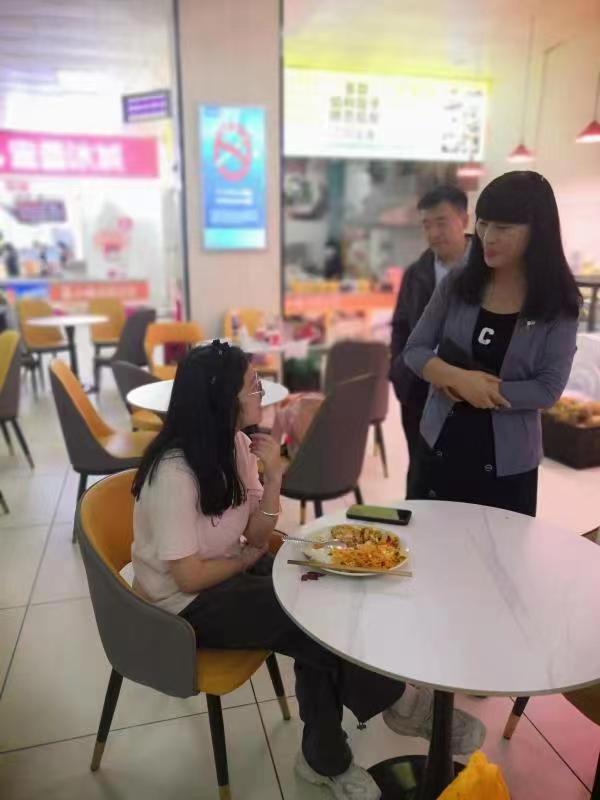 彭洁一行首先到二、三食堂就餐饮服务人员态度、菜品满意度、饭菜价格、卫生状况等问题与就餐学生亲切交流,在超市和水果售卖处详细询问价格和学生反馈情况。随后在校园内对环境治理、设施设备维护等后勤保障工作开展调研,并听取了相关负责人的工作情况汇报。