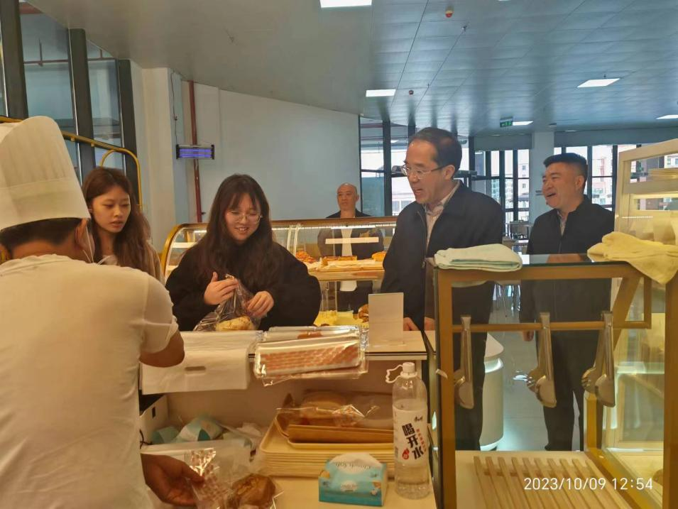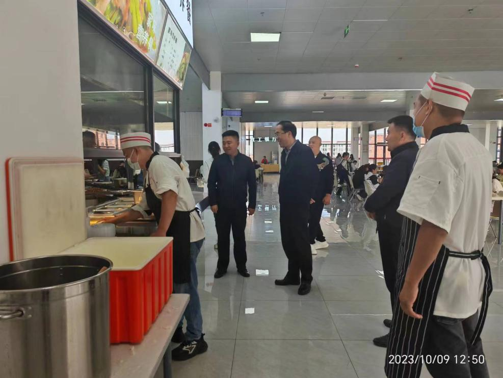 10月9日,校党委书记战勇在后勤集团总经理陈弘、副总经理吴健的陪同下实地检查学校东区五食堂工作情况。
