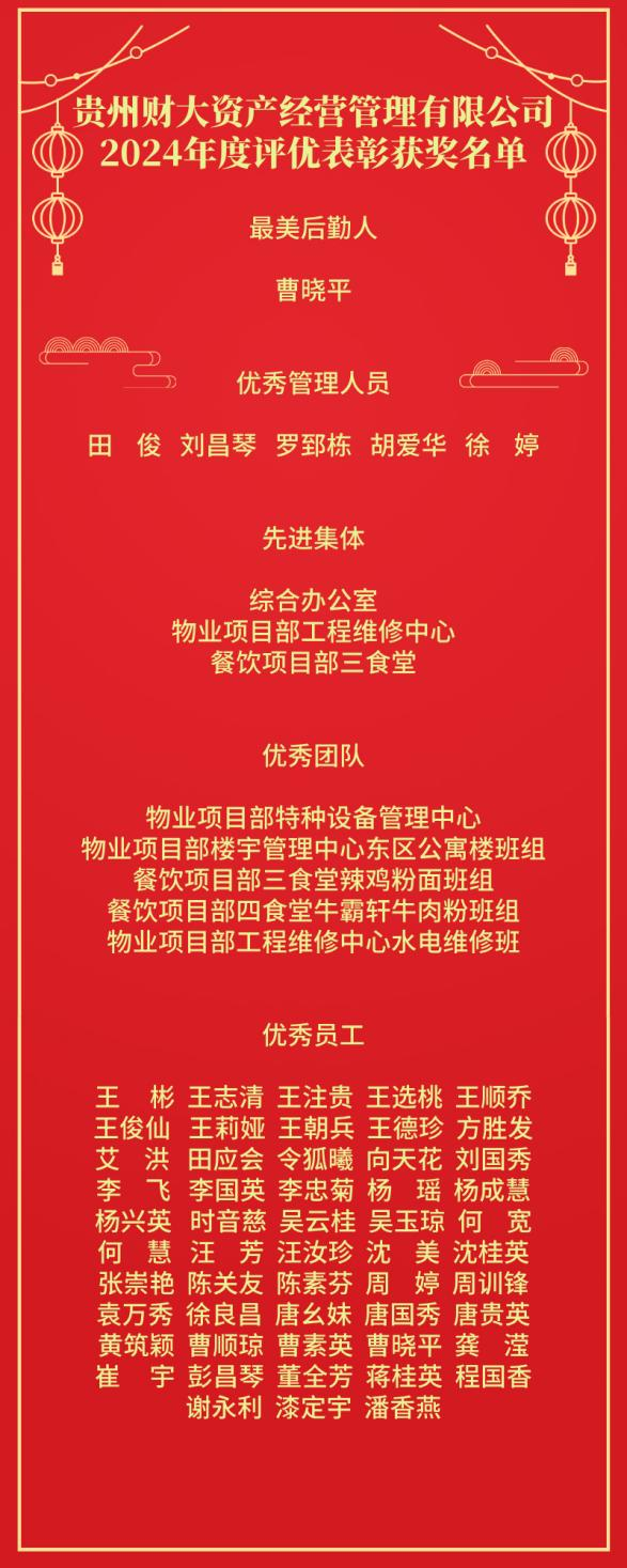 会上随后对获2024年度“最美后勤人”、“优秀管理人员”、“先进集体”、“优秀员工”、“优秀团队”奖项的个人及集体进行了表彰。
