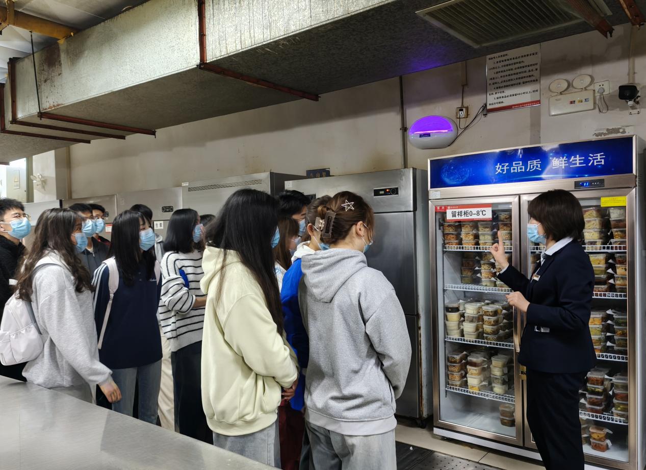 在餐饮部工作人员的带领下,学生代表们依次走进食材仓储区、加工操作间、食品留样区等核心区域,“沉浸式”体验校园餐饮保障工作。