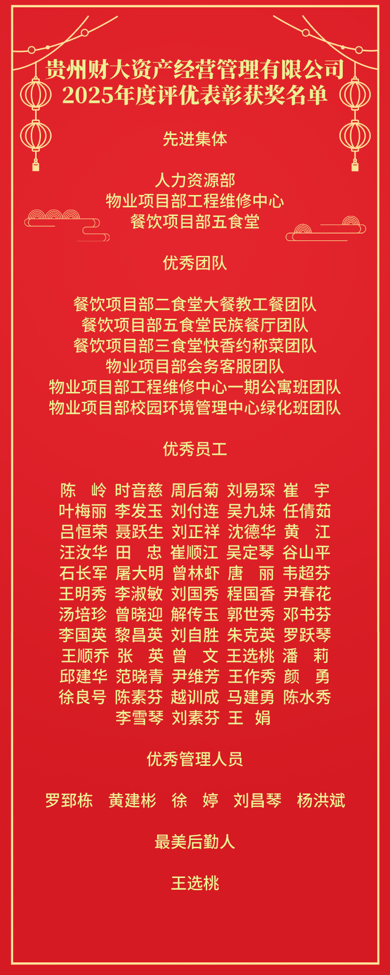 随后,总经理朱泉明宣读了表彰文件,现场对获2025年度“先进集体”、“优秀团队”、“优秀员工”、“优秀管理人员”、“最美后勤人”奖项的个人及部门(团队)进行了表彰。