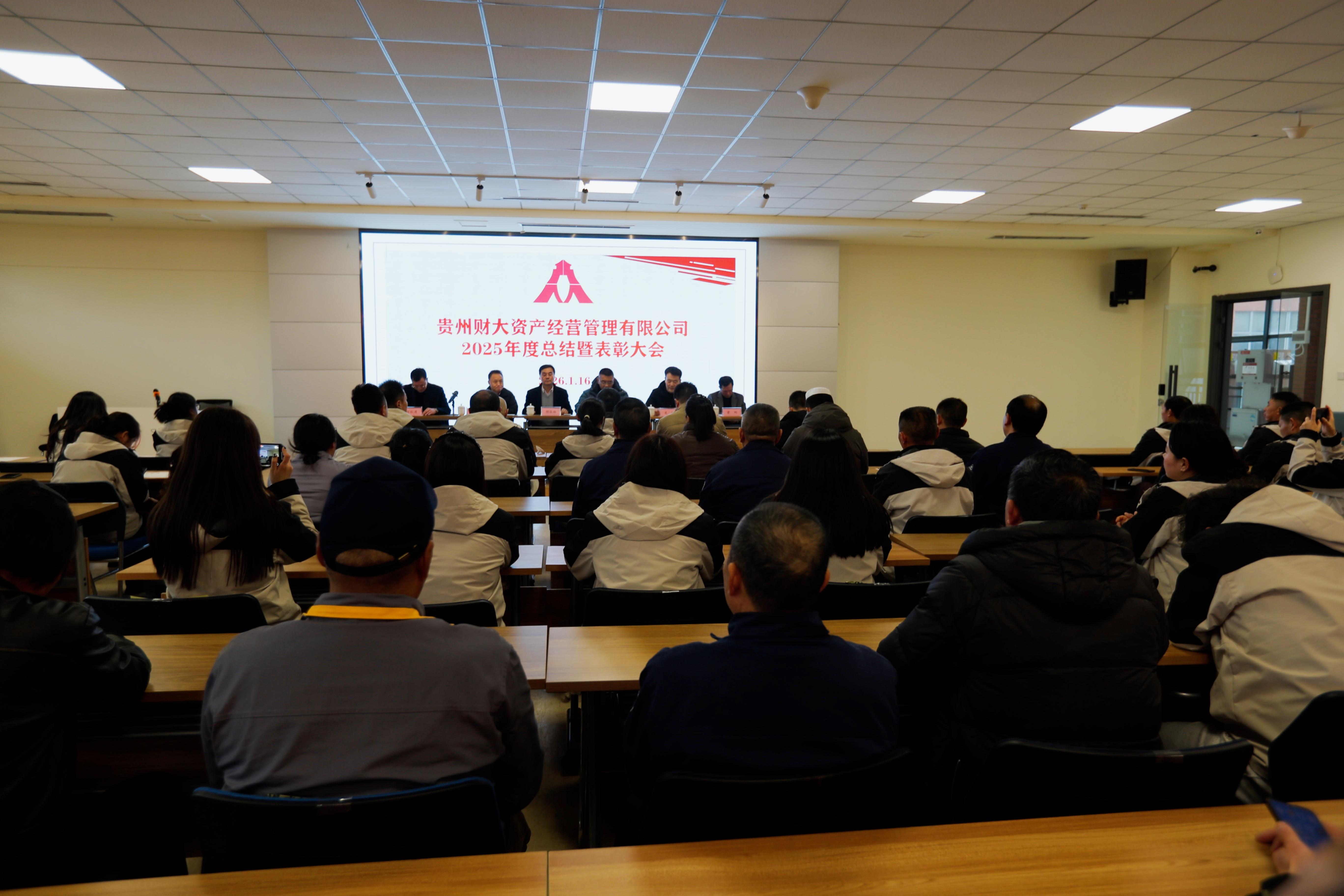岁聿云暮,一元复始。1月16日下午,贵州财大资产经营管理有限公司召开2025年度总结暨表彰大会。学校后勤处处长胡张林受邀出席,公司党支部书记罗玉江、总经理朱泉明、副总经理吴健、副总经理程松涛、副总经理蒙刚出席大会,出席大会的还有公司党支部委员、总经理助理、监事、财务负责人等公司高管。大会由公司副总经理吴健主持。