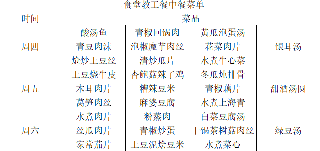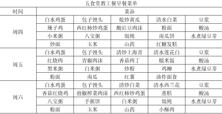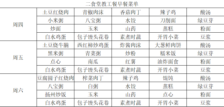 新的一周好!教工食堂已经整装待发,用满满的元气开启您活力充沛的一天。以下是详细的菜单表格,老师们可以据此提前规划自己的用餐选择哦!