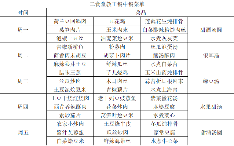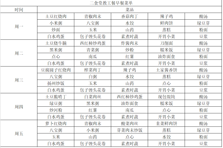 新的一周即将到来,为方便大家提前规划用餐,我校二、五食堂教工餐厅精心准备了下周早餐及午餐菜单。详细菜品已整理公布(请见下方菜单),欢迎各位老师阅览参考,选择心仪的餐食。