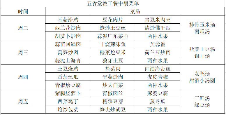 二、五食堂教工餐厅全体员工衷心祝愿您:用餐愉快,元气满满,工作顺利!